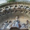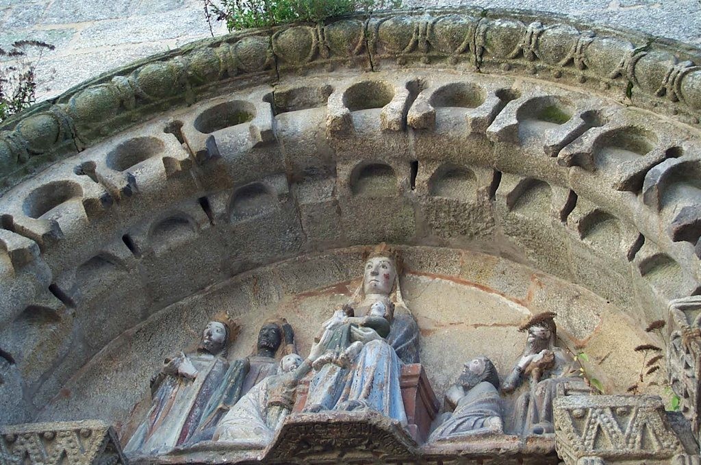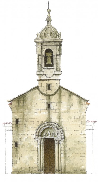 Sólo la portada es románica. El tímpano policromado que representa en relieve la Adoración de los Magos fue realizado en 1316; la torre y el resto de la iglesia actual son obra de Simón Rodríguez, quien en el siglo XVIII amplió el recinto considerablemente y construyó un nuevo campanario con una factura que sería muy imitada en Galicia en los años posteriores.