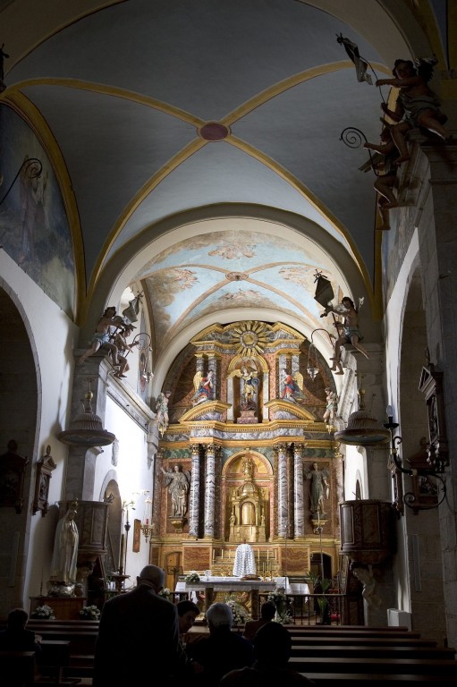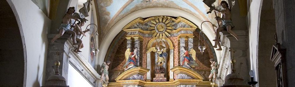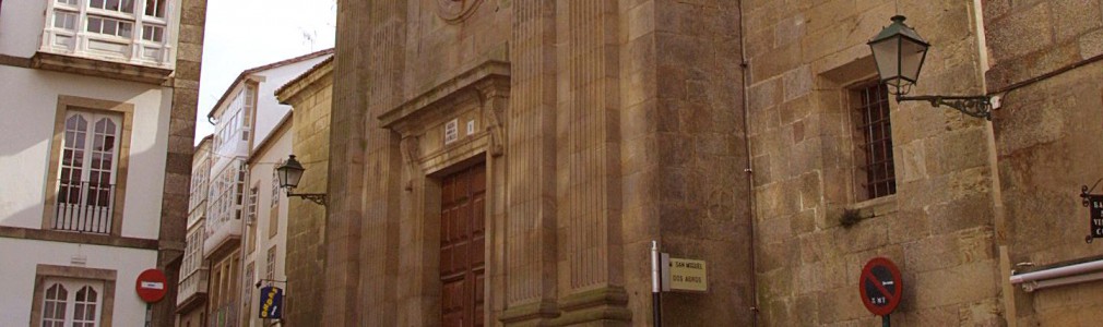 De espaldas a San Martiño Pinario, en la Plaza de San Miguel, se levanta una iglesia del siglo XVIII sin mérito artístico especial. La fachada se debe a Melchor de Prado Mariño. Cuatro pilastras jónicas acanaladas en un gran óculo central animan esta desnuda obra arquitectónica.