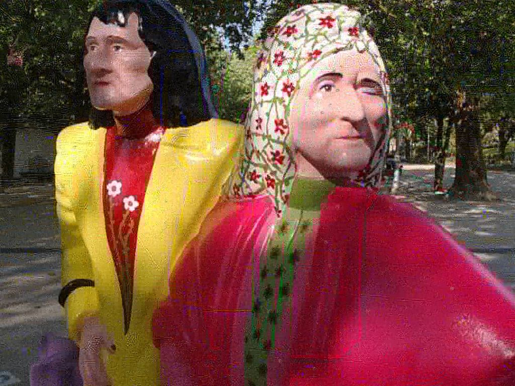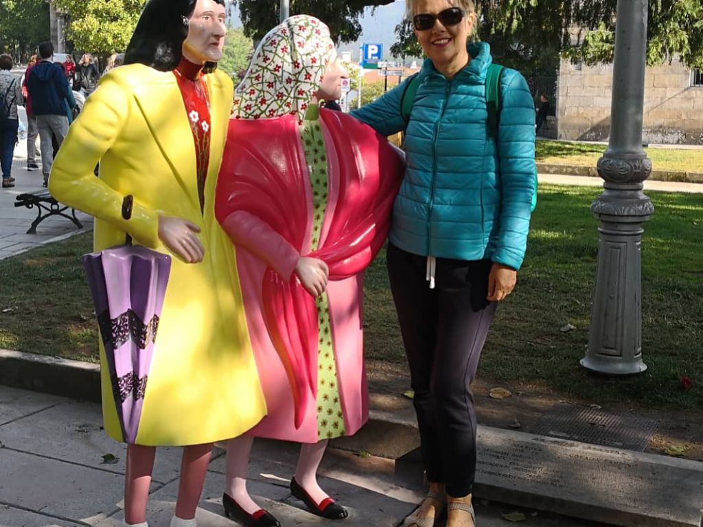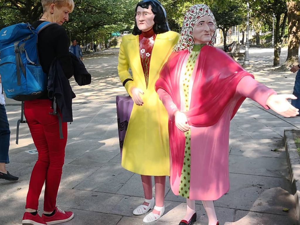 Coralia y Maruja Fandiño, personajes reales, hermanas populares de Santiago en la segunda mitad del siglo XX, asiduas paseantes de La Alameda a las dos de la tarde, notables por su manera de vestir, impropia para su época. El sobrenombre de ‘Las [Tres] Marías’ tiene su origen en las tres hermanas iniciales, contrapunto de las Tres Marías bíblicas (Madre de Jesús, María Salomé y María Magdalena), de las que quedaron las dos del monumento.