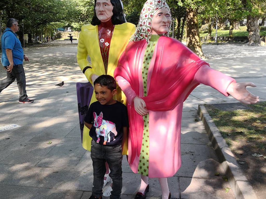 Escultura en bronce de César Lombera (1994) situada al inicio del Parque de La Alameda.