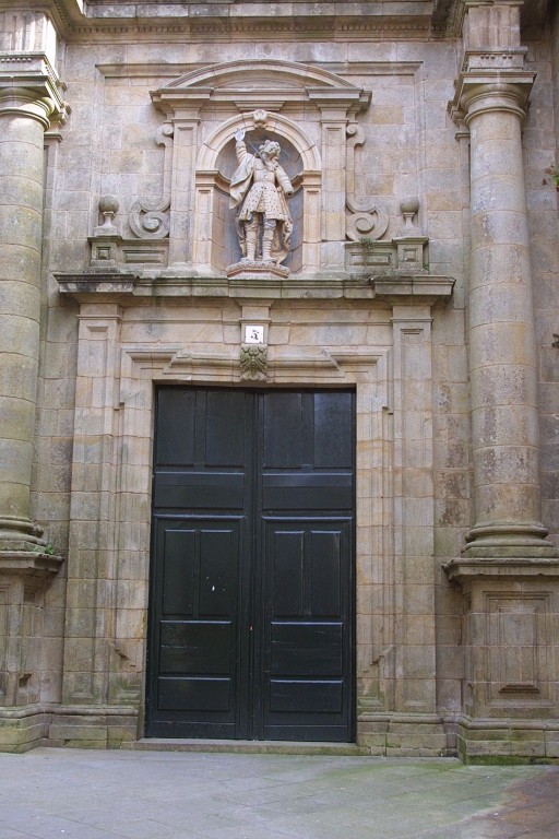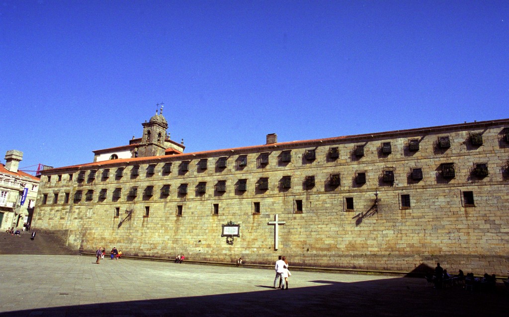 Uno de los muros laterales cierra un flanco de la Plaza de la Quintana con absoluta sobriedad, a base de muros lisos sin decoración. En el centro de este muro, una lápida recuerda la formación del Batallón Literario organizado por los universitarios compostelanos para defensa de Galicia contra las Tropas de Napoleón.