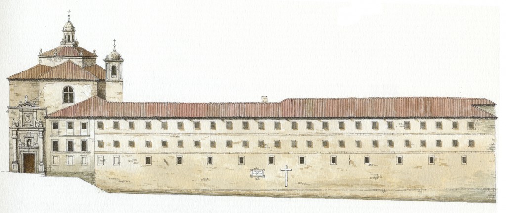 En la fachada opuesta a la Plaza de la Quintana, encontramos la portería y en el ángulo la llamada puerta de los carros.