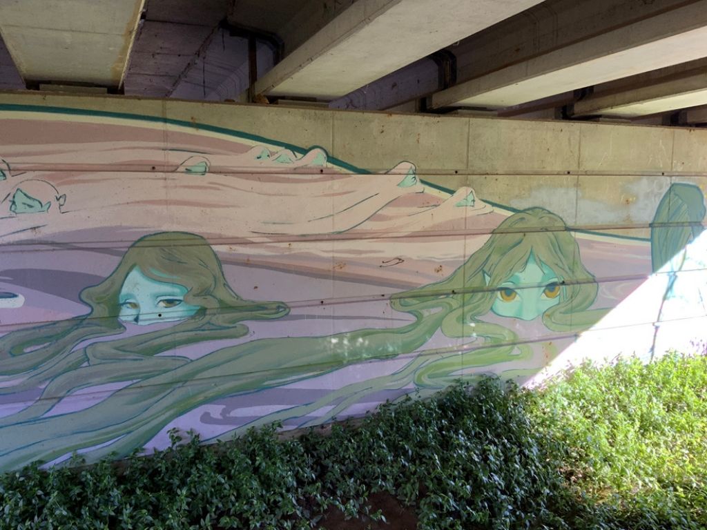 Trabajo realizado para el Ayuntamiento de Santiago en el 2023, en el marco del proyecto Edusi para la rehabilitación de la senda fluvial del Sar. La artista compostelana Fiesta trabajó junto a 7H Cooperativa Cultural para reinterpretar la figura de las xacias, ser mitológico de las aguas responsable del cuidado y limpieza de los ríos. Este importante papel, resaltado en colectivo en la composición de la obra, quiere revertir la imagen de la xacia como criatura individual, solitaria, objetualizada y ciertamente algo maligna, que venía siendo habitual en nuestra tradición oral.