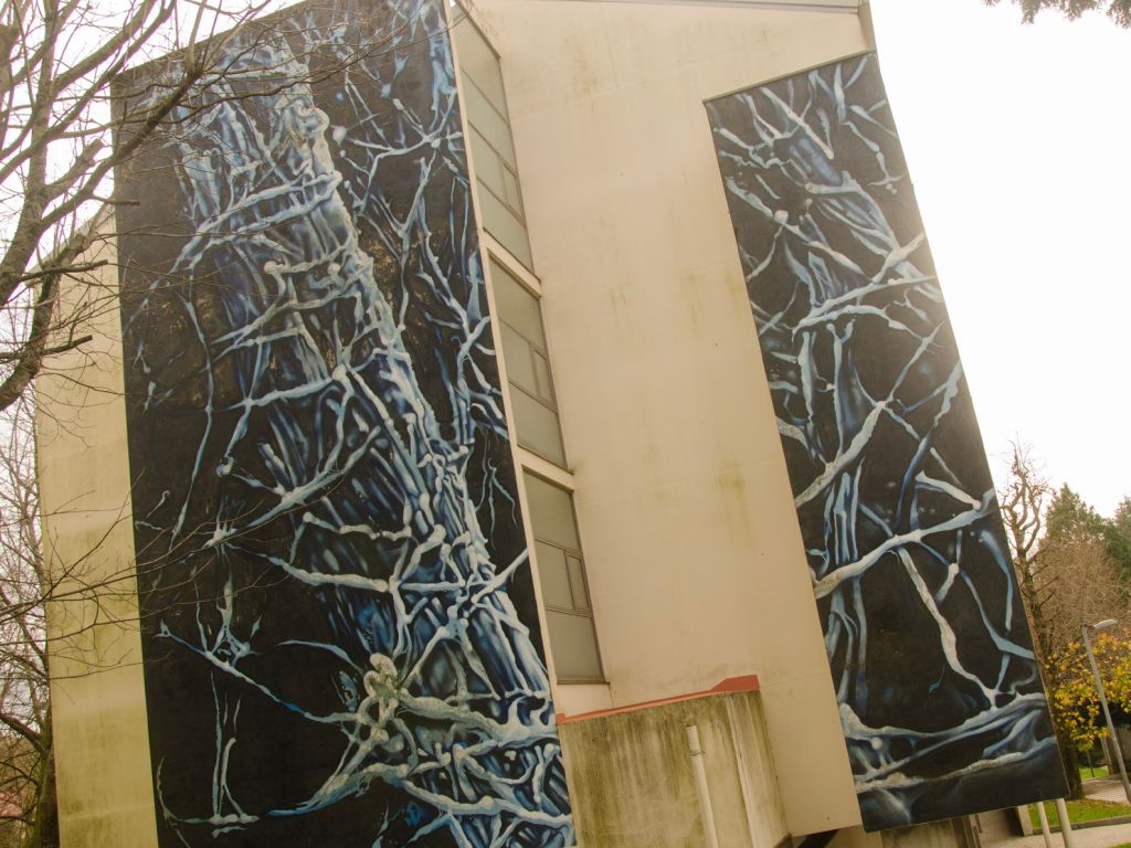 El motivo del mural reproduce una imagen microscópica de varias redes neuronales que se entrelazan entre sí. El concepto funciona como una ampliación visual de la actividad cerebral que tiene lugar durante los procesos creativos de la mente. De micro a macro en escala real, un zoom al estado mental de nuestro cerebro mientras suceden los procesos más activos de la psique.