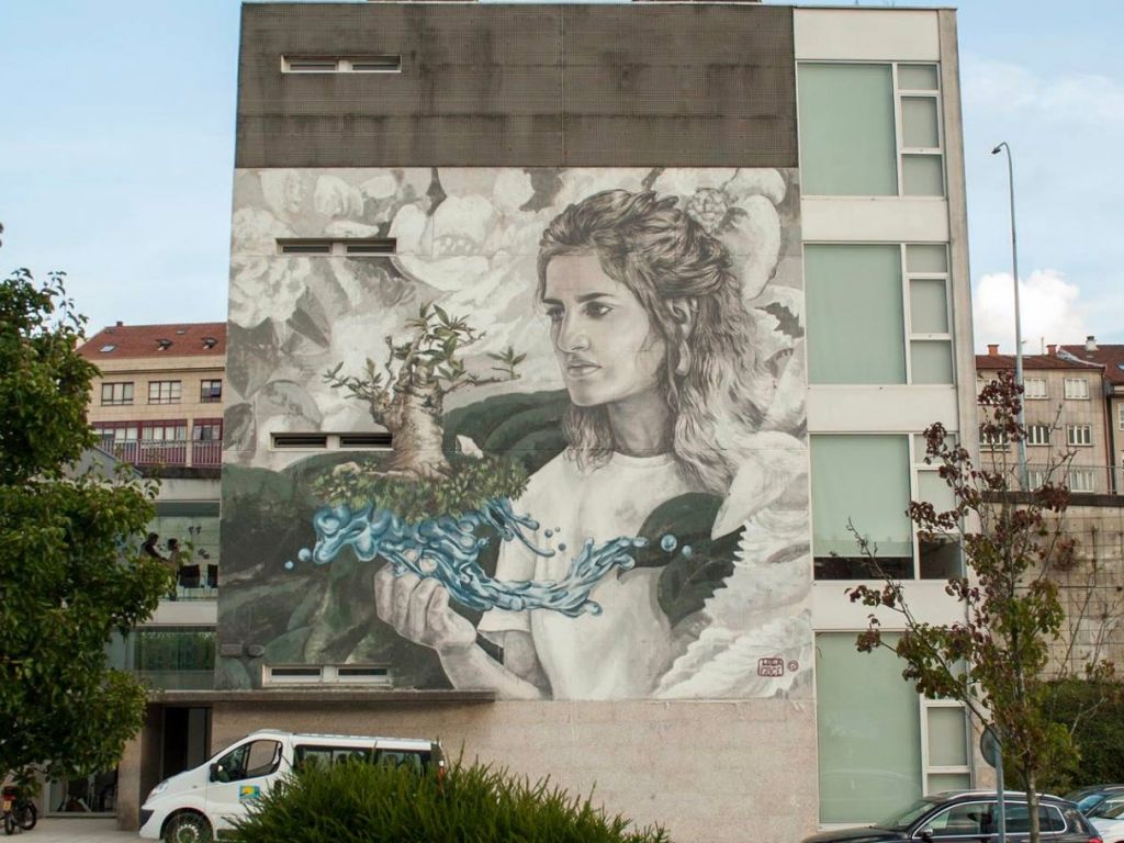 Lula Goce, natural de Baiona es licenciada en Bellas Artes por la Universidad de Salamanca, es una de las muralistas más internacionales y con más bagaje en los últimos años en la escena galega del muralismo contemporáneo.