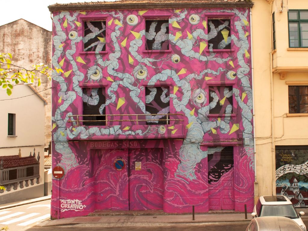 La obra parece interpelar al propio edificio, habitado por las ya míticas bodegas Siso, y sus autores, con una composición inundada por un mar de vino y protagonizada por un organismo formado por múltiples ramificaciones, que recuerdan a una suerte de fantástica parra que se expande orgánicamente por el espacio y de la que brota una especie de frutos con forma de ojos. La obra hace referencia al espacio que habita y a la propia definición de los Mutante Creativo, que se autodefinen como “un organismo multidisciplinar con mucho ojo y múltiples extremidades capaces de realizar trabajos diversos”.