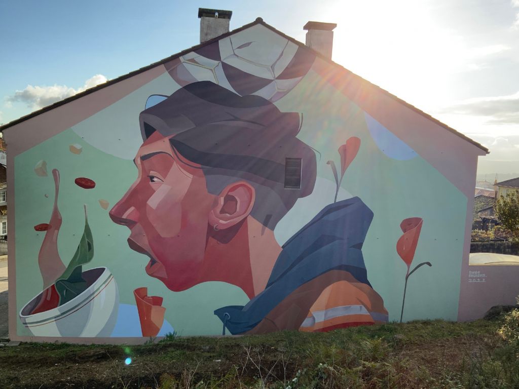 Este mural es una mezcla entre nostalgia, humor y cultura, al tiempo que un homenaje autorreferencial a sus orígenes picheleiras. Desde bien pequeño, Denís jugaba al fútbol a menudo en las Cancelas (donde está situado el mural), por lo que decidió representar a aquel mismo chico que pasaba las horas con una pelota mikasa todo el día en cabeza a la par que una taza de caldo bien calentito siempre a su lado. Caldo y fútbol –pan y circo–, dos conceptos que se entrelazan para traer las épocas pasadas al presente con un pedazo de ironía y nostalgia.