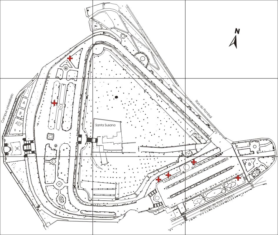 Algunos ejemplares dispersos: uno en los estanques de Méndez Núñez, tres situados a ambos lados del Quiosco de la Música, uno más entre la hilada externa de palmeras canarias y otro junto al monumento a La Lechera.