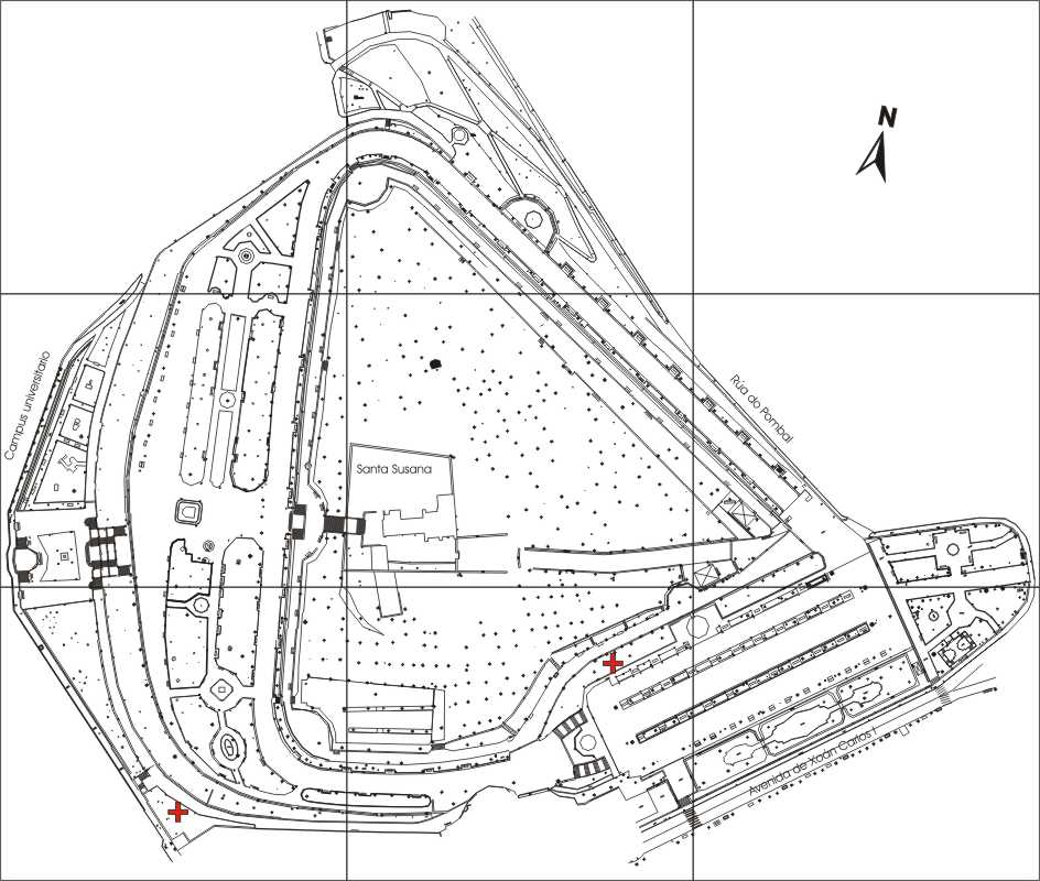 Existe un ejemplar de cierto porte al lado izquierdo del Quiosco de la Música y otro, apenas un arbusto, en la explanada próxima a la Facultad de Químicas.