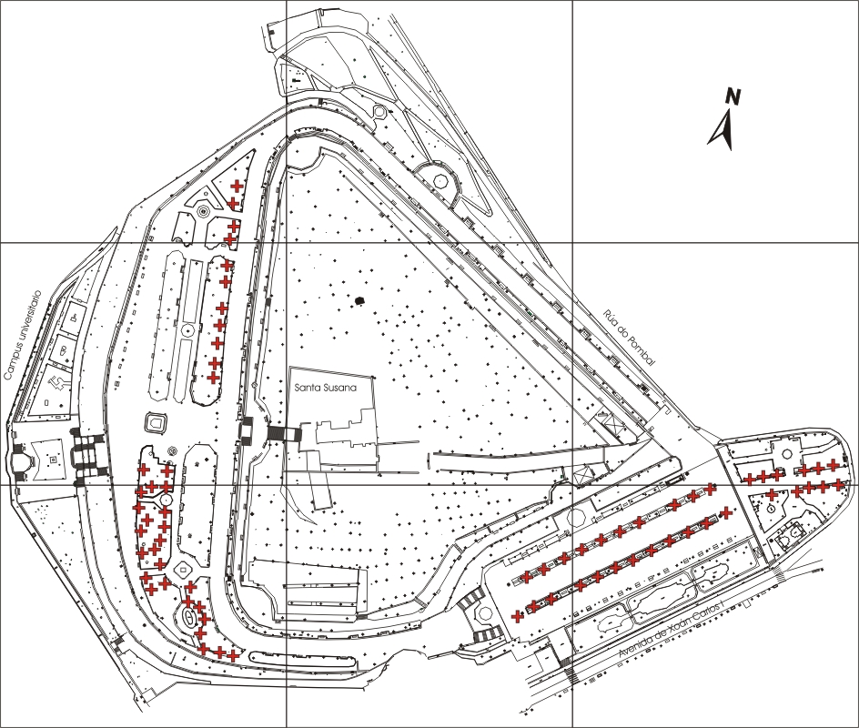 Hay numerosos ejemplares distribuidos por el conjunto de los jardines. Están presentes en el llamado Campo de la Estrella, intercalados con los tilos en La Alameda, en el entorno del Estanque Oval y del monumento a Pais Lapido, además de una fila paralela a la banda interior de palmeras canarias en el Paseo de las Letras Gallegas.