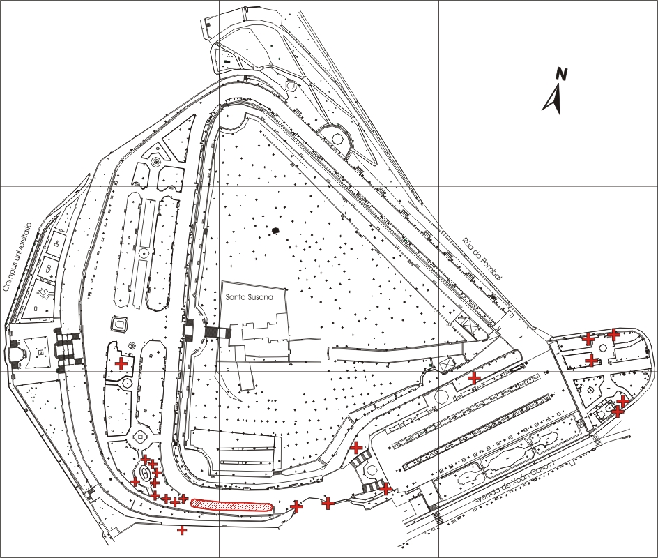 Con variaciones en el color de la flor, incluso blanquecina, y tipo de hoja, son relativamente frecuentes. La mayor parte ocupa la explanada situada al inicio meridional del paseo de La Herradura y el entorno del Estanque Oval. Hay cuatro ejemplares en las esquinas de la plazoleta ajardinada frente al Instituto San Clemente, otros más dispersos en La Alameda, etc.