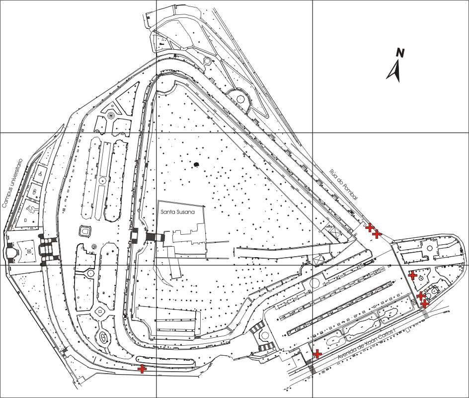 Existen algunos ejemplares dispersos en distintos puntos del conjunto de jardines: junto a la entrada del Paseo de Los Leones, en el Campo de la Estrella, un ejemplar aislado en los jardines de Méndez Núñez, frente a la Iglesia de El Pilar y en el talud de bajada a la explanada con abetos de Douglas.
