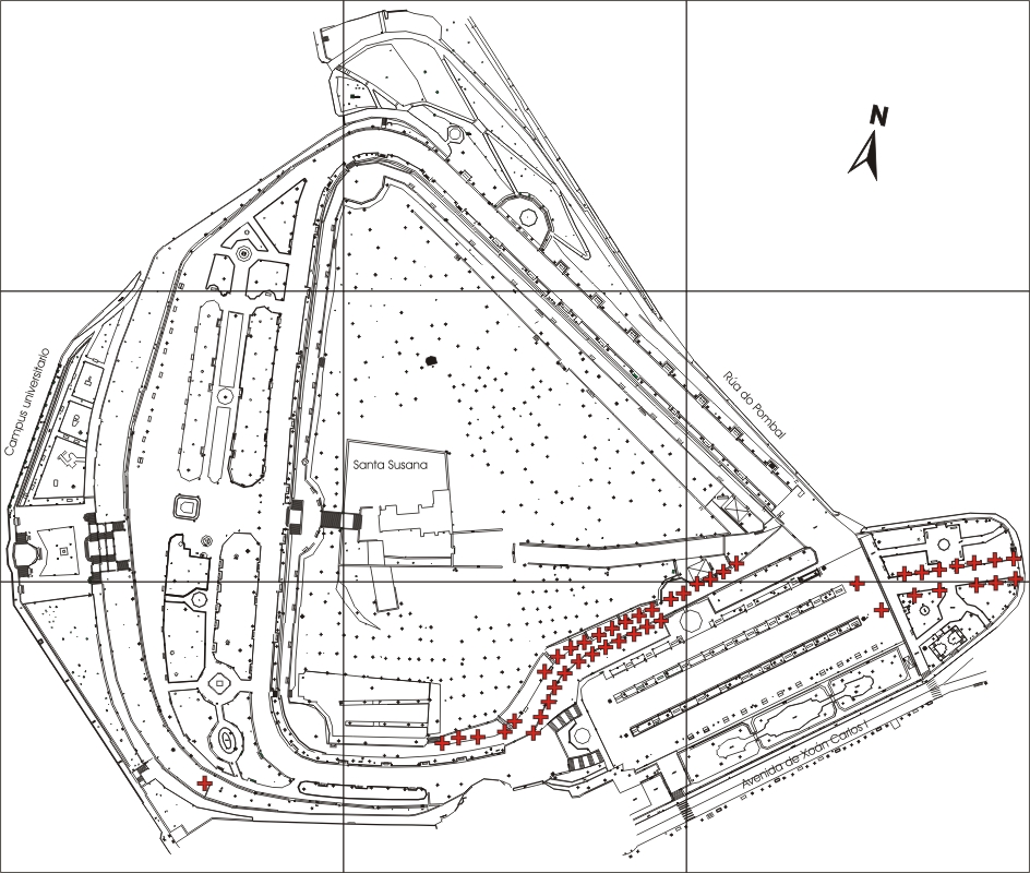 Existe una doble alineación detrás del Quiosco de la Música. Destacan por su porte los situados en el Campo de la Estrella.