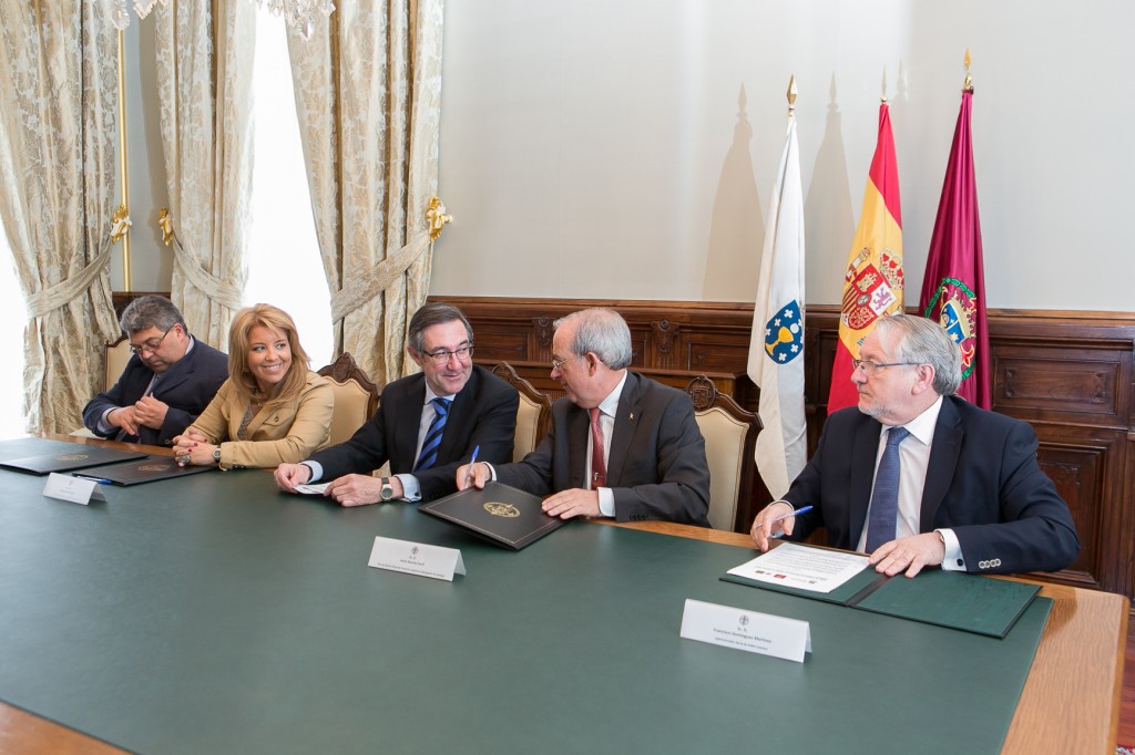 La Catedral de Santiago de Compostela, Turismo de Santiago, la Asociación de Hostelería Compostela y la Cámara de Comercio firmaron hoy un acuerdo de colaboración para la conservación y puesta en valor del patrimonio histórico artístico del templo compostelano, en el que se incluye el funcionamiento semanal del Botafumeiro, entre otras acciones.