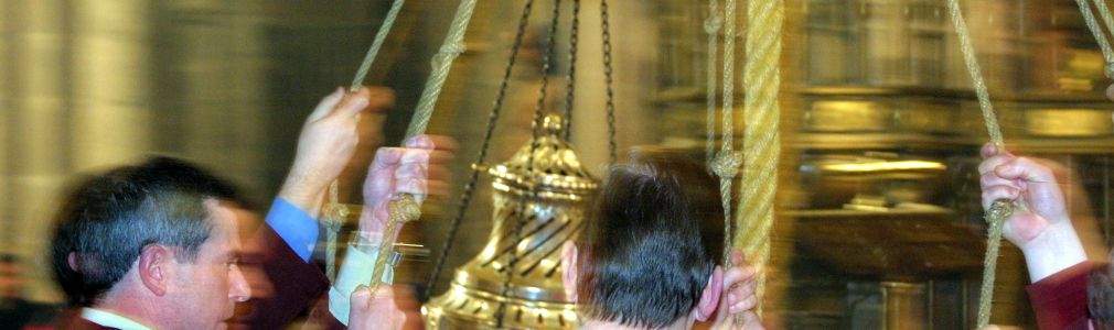 La concejala de Turismo, Reyes Leis, y los presidentes de la Asociación Hostelería Compostela, José Manuel Otero y Jesús Sordo, presentaron en el Pazo de Raxoi oelmaterial con el que se pretende promocionar la ceremonia del Botafumeiro que tiene lugar todos los viernes de abril a octubre en misa de 19.30.