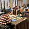 La concejala de Turismo, Míriam Louzao, acompañada de la presidenta de la Asociación Hostelería Compostela, Sara Santos, de la gerente de Turismo de Santiago, Flavia Ramil, y de representantes de empresas y entidades patrocinadoras de Santiago(é)tapas, como Pedro López, Trade Marketing Horeca Hijos de Rivera, y Guillermo Fernández,...