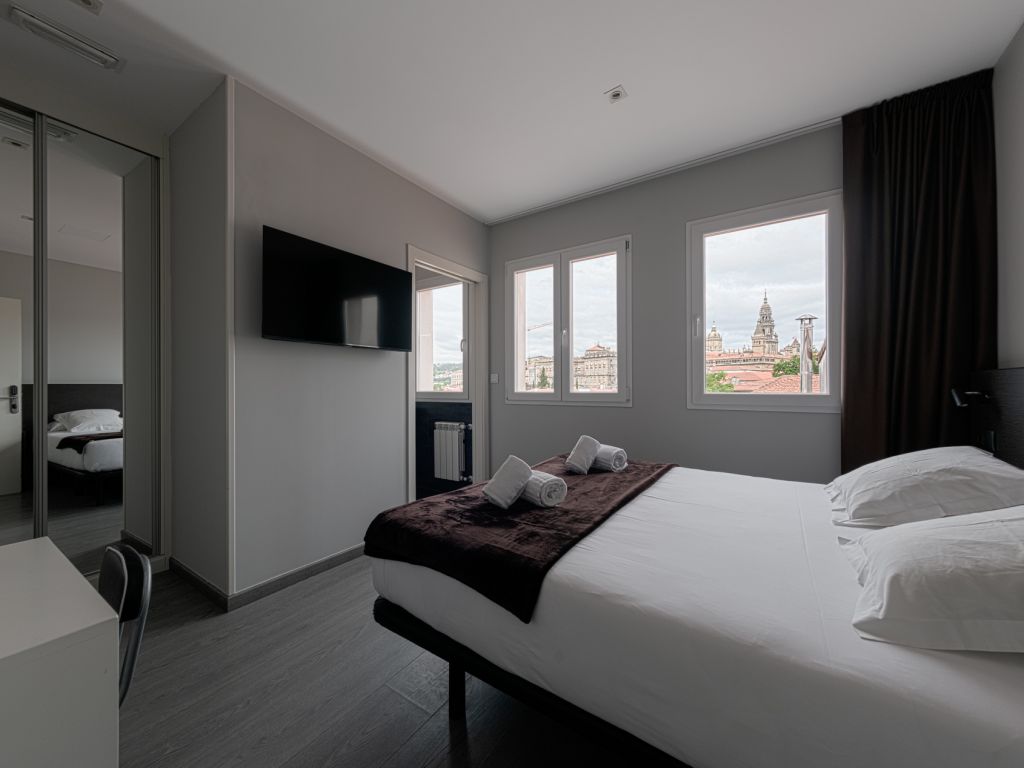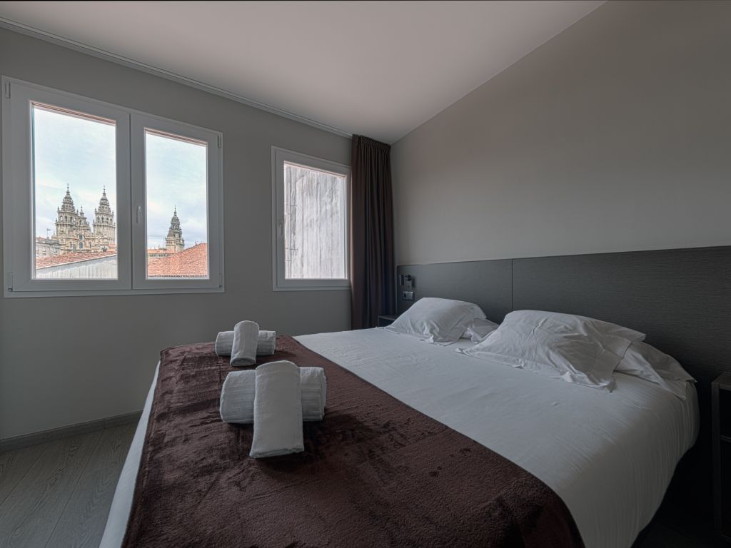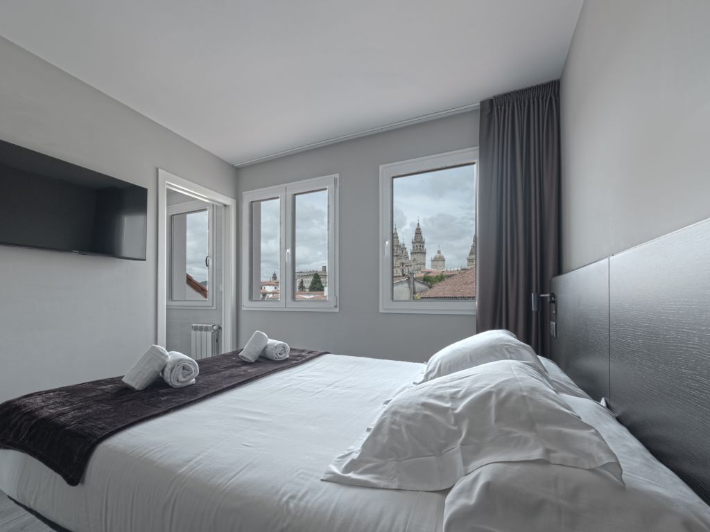 2 habitaciones Estándar (con una cama de 150cm) - VISTAS A LA CALLE, 1 habitación Twin (con dos camas de 105cm), 2 habitaciones superiores (Con 1 cama de 150cm) - VISTAS A LA CATEDRAL, 2 habitaciones individuales (con cama de 135cm).