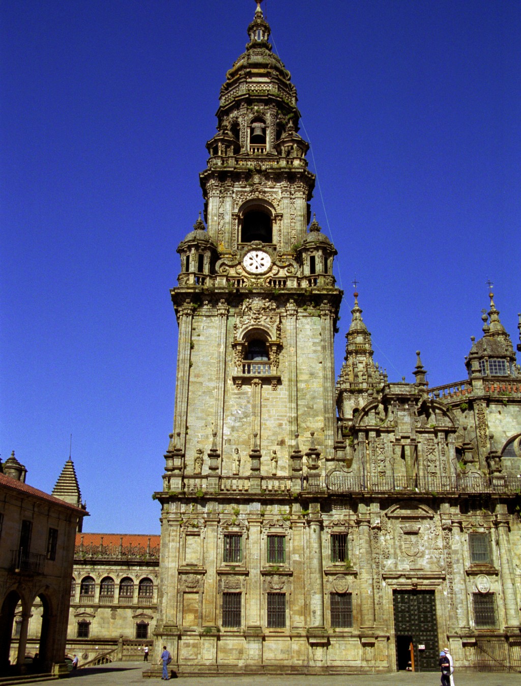 La Torre del Reloj tiene nombre propio: se llama Berenguela por un arzobispo de la Edad Media que construyó la torre para defender la Catedral. La verás desde muchos puntos de la ciudad, pues tiene la misma altura que las torres del Obradoiro. Comprobarás que del reloj hacia abajo es robusta como una torre de castillo, y de allí hacia arriba elegantísima, porque tiene un añadido barroco.