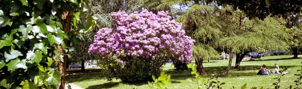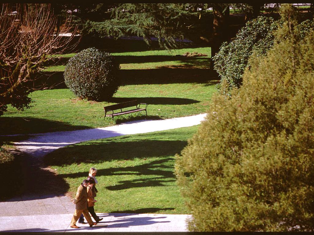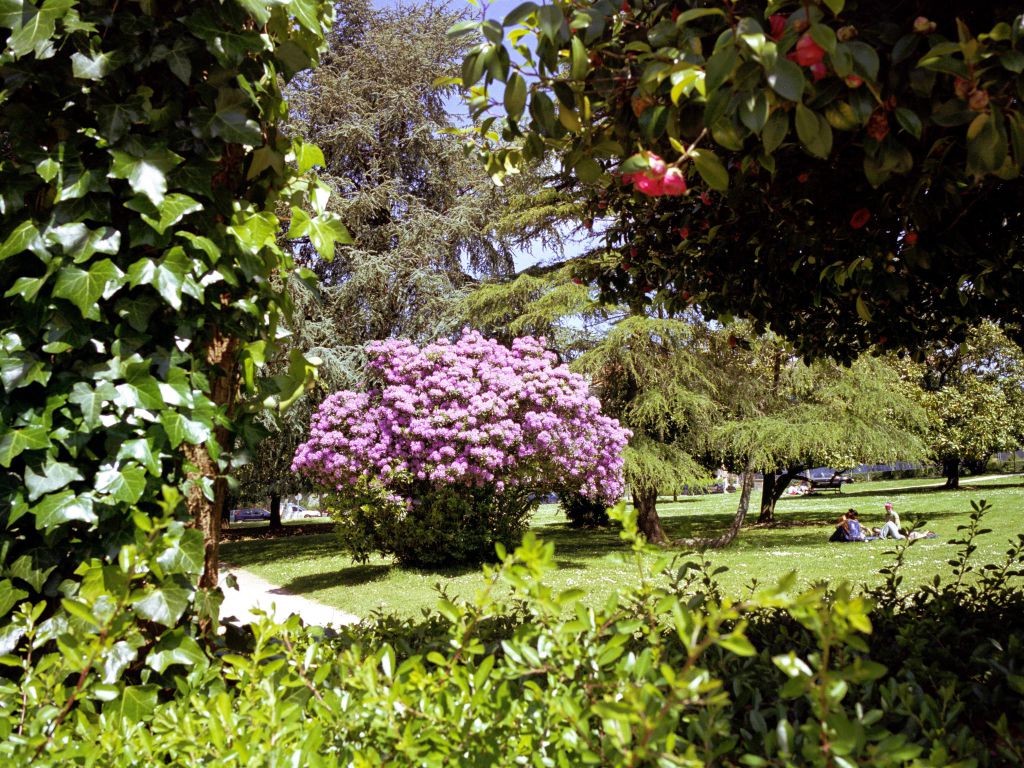 Los jardines se formalizan con un riguroso trazado geométrico: praderas, parterres, estanques y caminos se enlazan mediante paseos en los que podemos encontrar una gran diversidad de árboles y plantas ornamentales 'tuyas, camelios, magnolios, pinos, cedros, enebros, ginkgos...-, constituyendo un peculiar jardín botánico urbano.