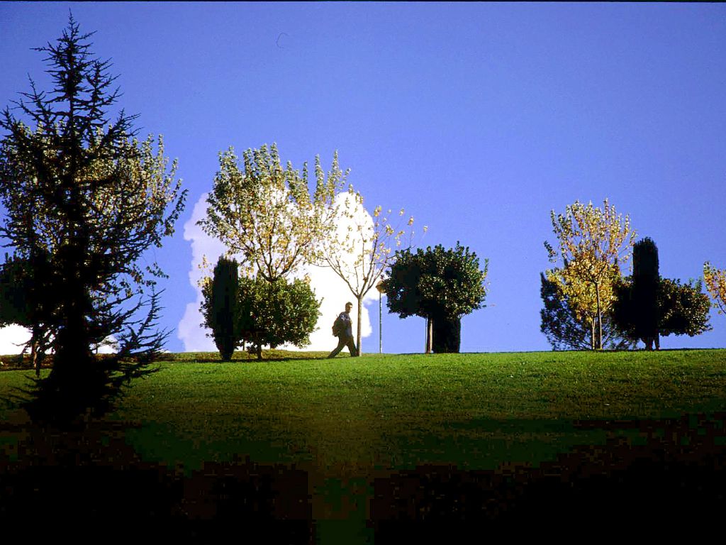 El trazado general se basa en un eje que mira a poniente desde la escalinata que lo conecta con la Alameda, y que relaciona zonas verdes, equipamientos deportivos y residencias. Desde la cima de la gran escalera se disfrutan unas magníficas vistas del conjunto, así como del monte Pedroso y del valle de Amaía. El agua que brota al pie de la escalera recorre el paseo central dando lugar a estanques y fuentes.