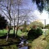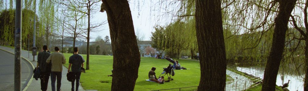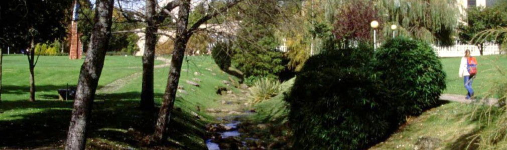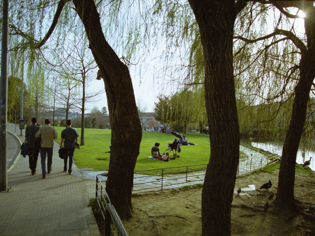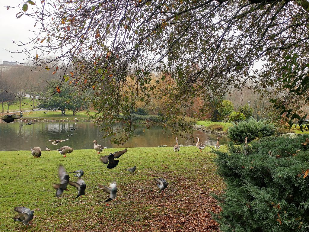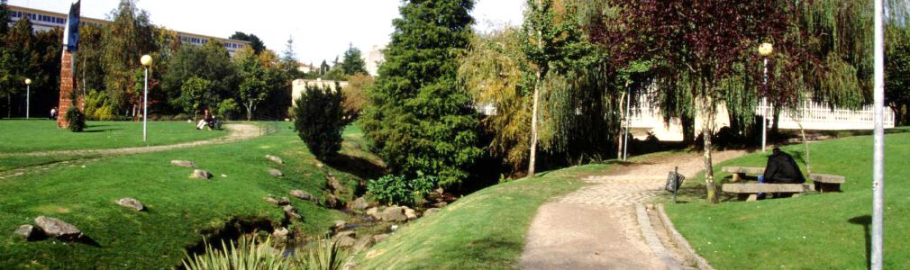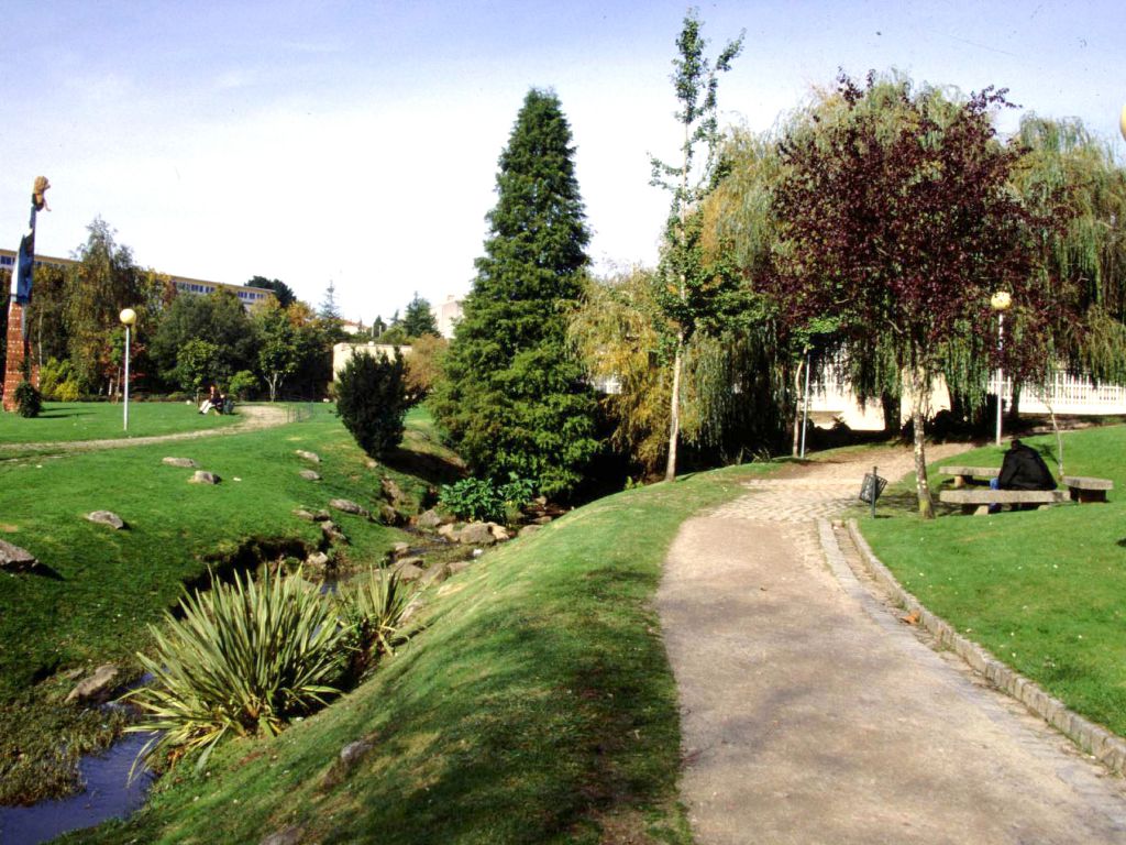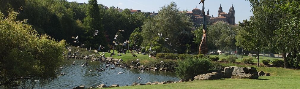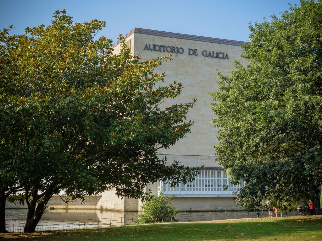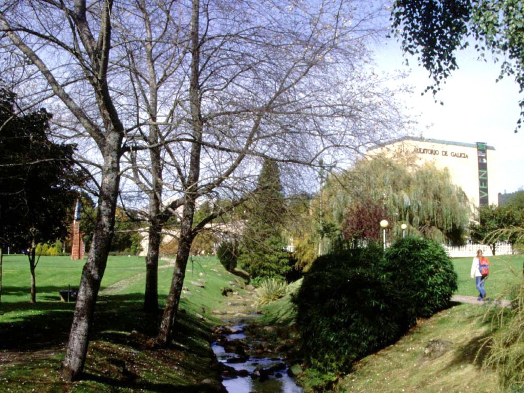 A los pies del Auditorio de Galicia -de ahí su nombre- y en las orillas del pequeño regato Corgo, se extiende este tapiz verde de prado. El arroyo es el elemento que estructura el parque, formando un gran estanque-espejo en el que se mira la arquitectura contemporánea del Auditorio. En el parque destaca, por su altura y colorido, la escultura surrealista del artista gallego Eugenio Granell.