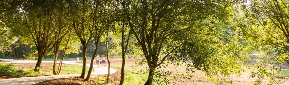 El parque cuenta también con un robledal convertido en espacio de ocio con mesas, bancos y elementos deportivos propios de un circuito de running.