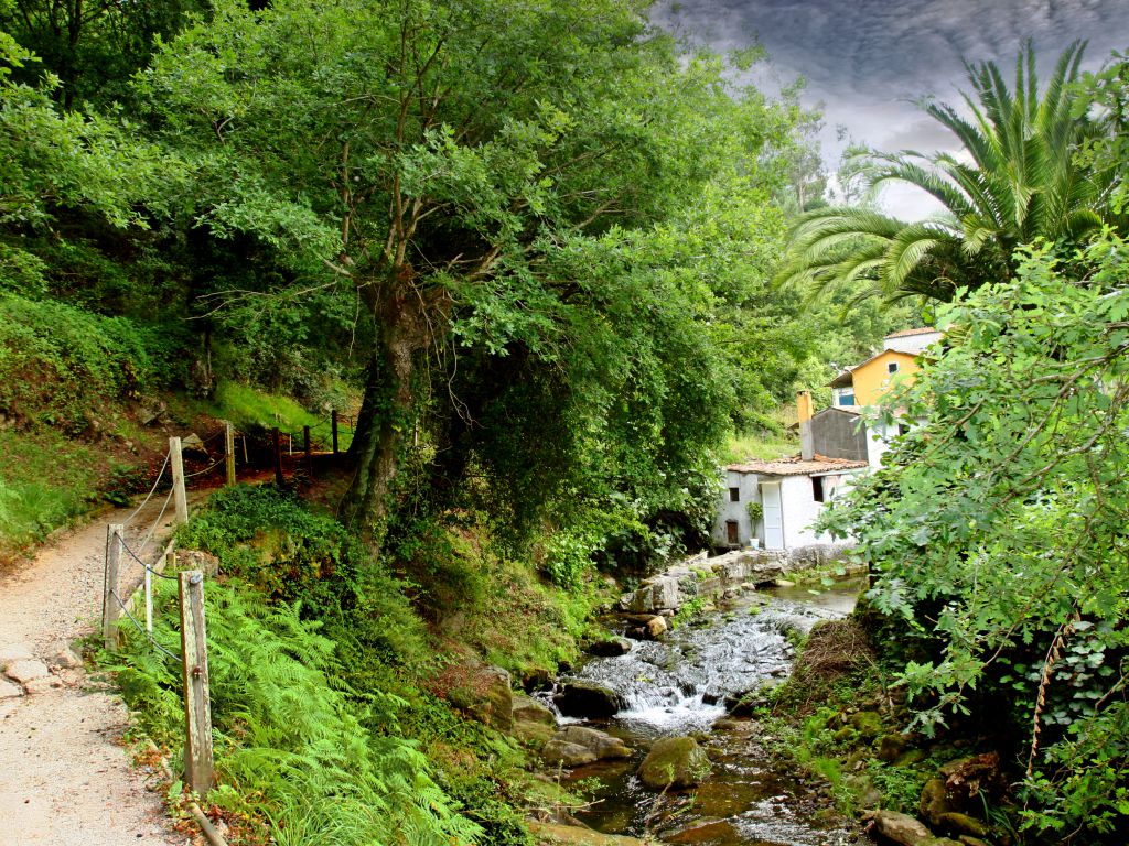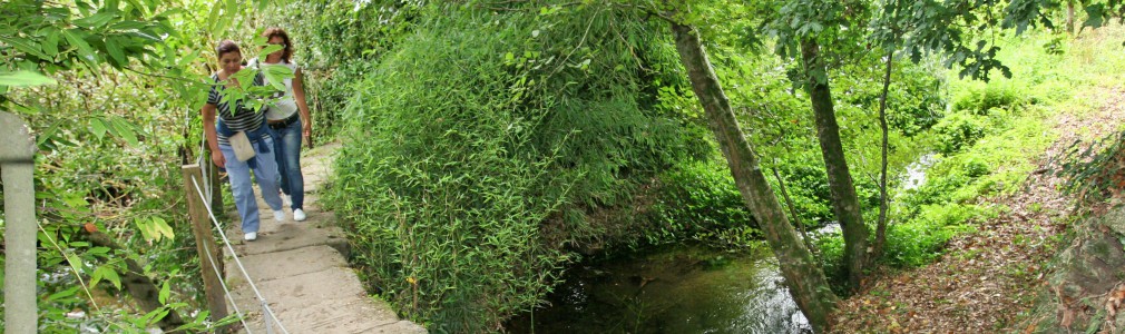 El sendero está sombreado, como si de una pérgola natural se tratase, por robles y vegetación típica de las riberas gallegas: alisos, abedules, sauces, etc.