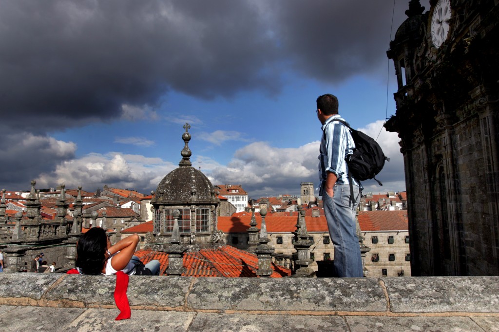 Tras el ascenso por las estrechas escaleras de la torre, aparecen las impresionantes cubiertas escalonadas de la Catedral, que se recorren en toda su extensión. Este cielo de piedra ofrece la oportunidad única de entender las distintas etapas de construcción del templo; tener sus torres, cúpulas y pináculos al alcance de la mano y gozar de inmejorables perspectivas sobre las plazas monumentales. A casi 300 metros de altitud, a 30 metros por encima de la Plaza del Obradoiro y con un campo de visión de 360 grados, la mirada se desliza por los tejados y se pierde en los montes circundantes en una visión inolvidable.