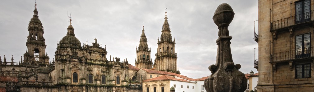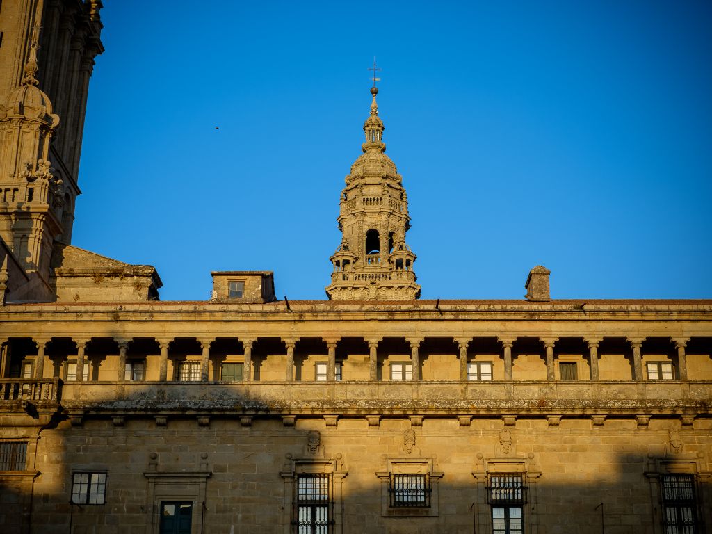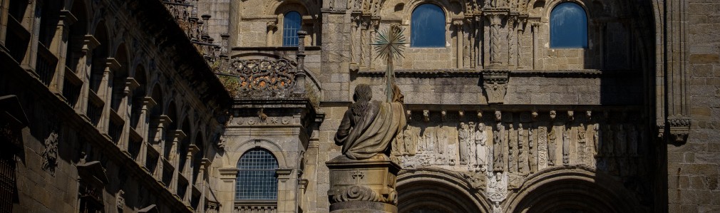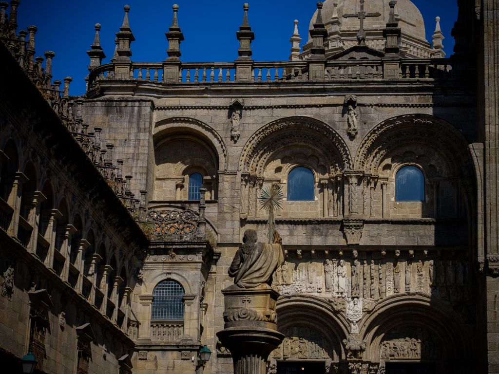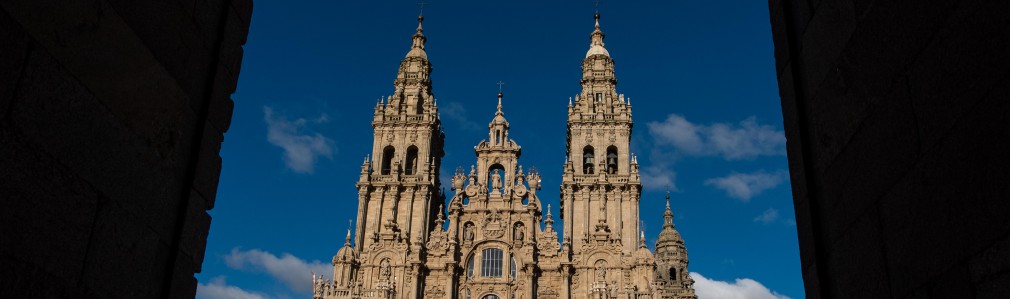 La estampa más fotografiada de la Catedral es su portentosa fachada oeste, llamada del Obradoiro por la prolongada presencia de los talleres de canteros (obradoiros en gallego) que se afanaron durante casi 100 años en la construcción de este gran telón barroco de los siglos XVII y XVIII.