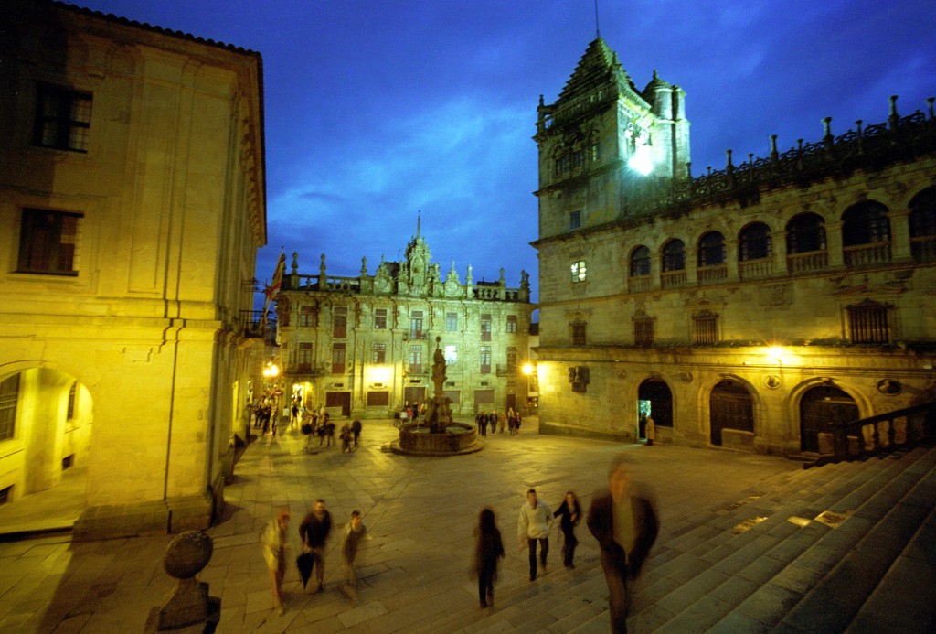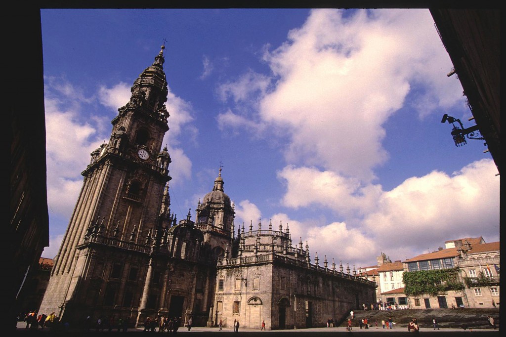 Hasta ese entonces, la fachada oeste de la Catedral se componía de dos torres románicas de robustez cúbica y altura desigual, y una bella portada doble dedicada a la Transfiguración de Cristo. Sus puertas, abiertas día y noche, dejaban el gran Pórtico de la Gloria al descubierto y visible desde el descampado. La futura Plaza del Obradoiro se iría urbanizando muy lentamente. Con la construcción del Hospital Real (1501) y el nuevo claustro de la catedral (1521-1614) se logró comenzar a organizar el espacio público.
