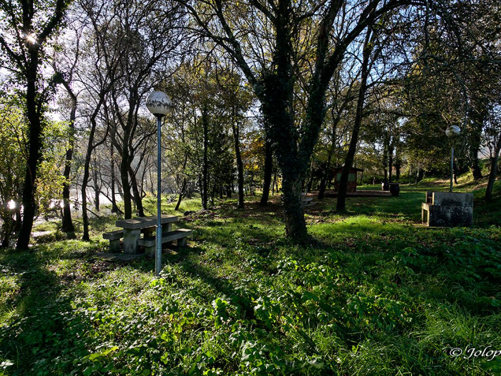 En la entrada de la ínsua hay una fuente de piedra, en la que está la placa con los datos de la inauguración del área. Y repartidos por esta hay 17 puntos de luz. Fuera del islote, incluso antes de la entrada a su puente, hay una carballeira de robles centenarios bajo la cual se aparcan los vehículos.