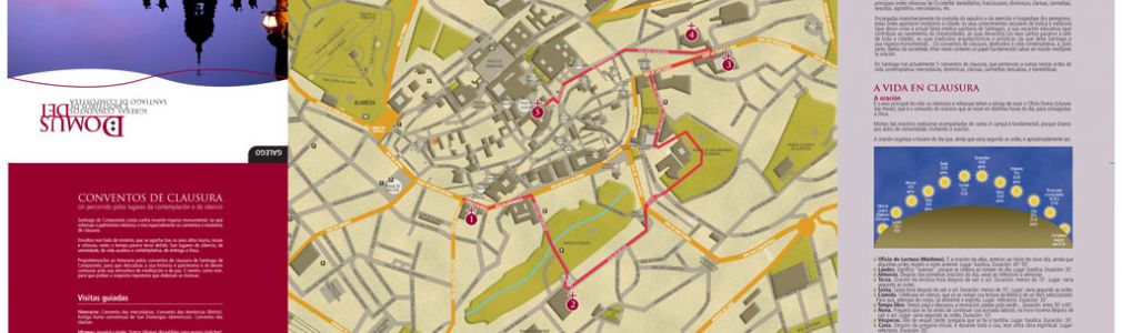 Folleto básico sobre el Camino de Santiago, sus rutas y su recorrido dentro de la ciudad, en tres versiones: castelán,...