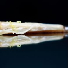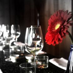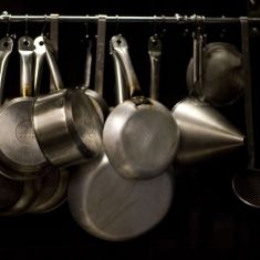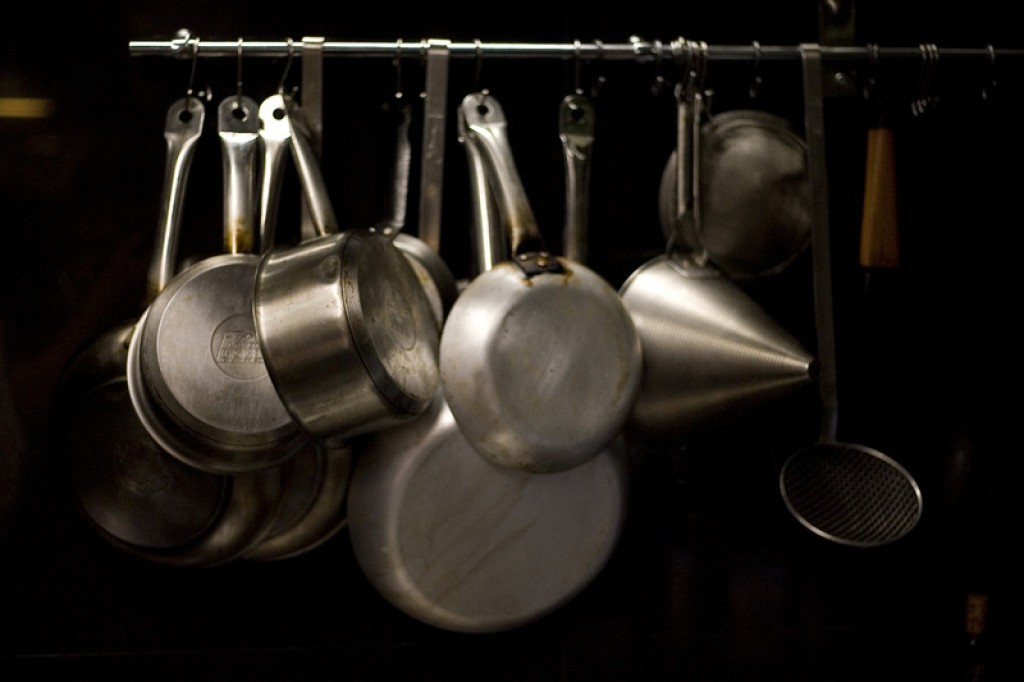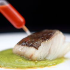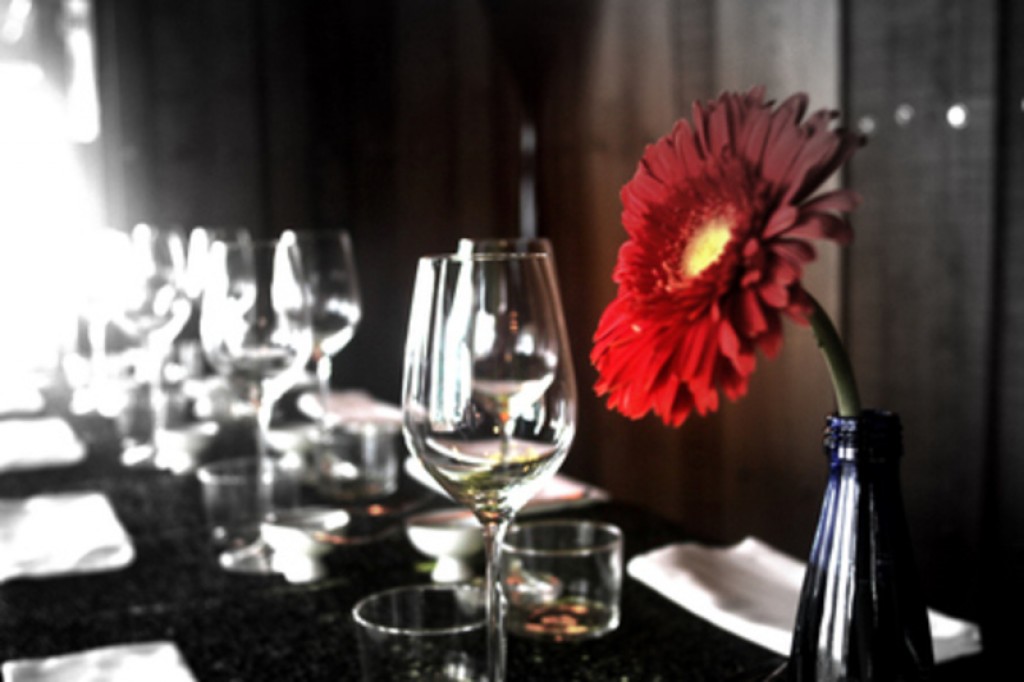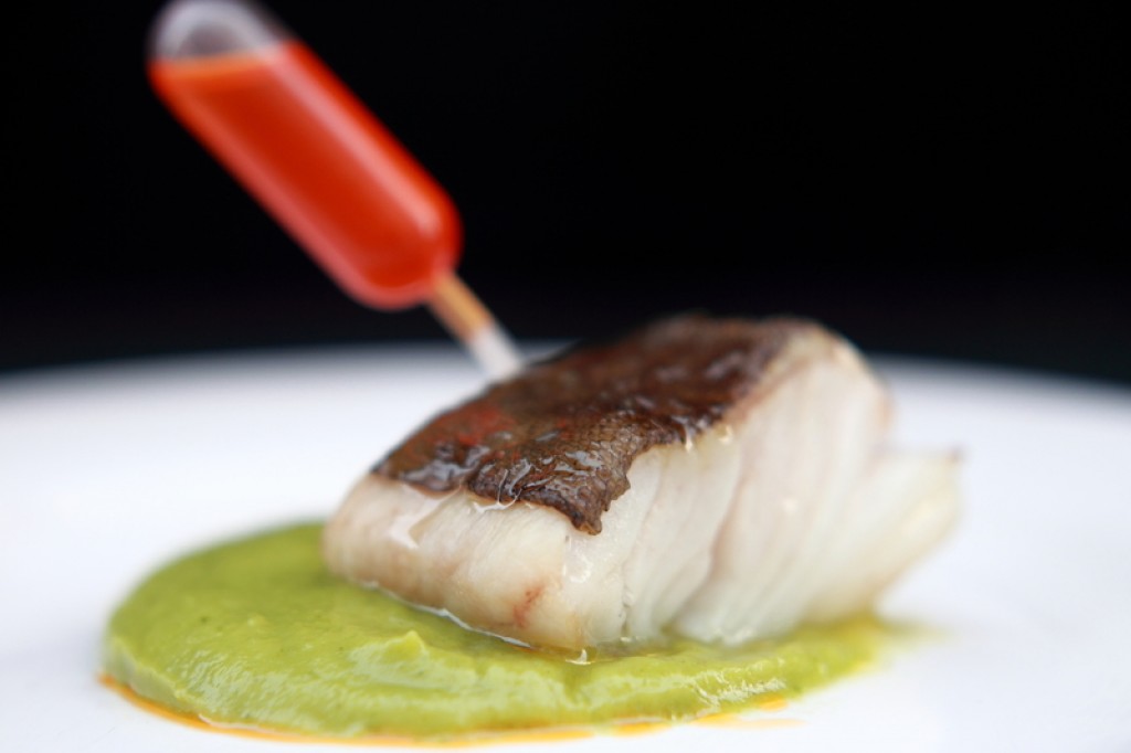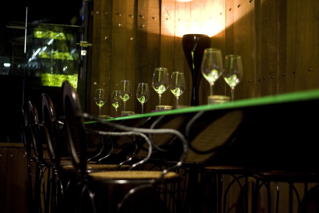 Original taberna con ecléctico mobiliario y taburetes en la calle donde preparan cocina de mercado y tapas.