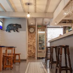 Café-Bar. Desayunos, raciones, bocadillos, sandwiches, hamburguesas y ensaladas.