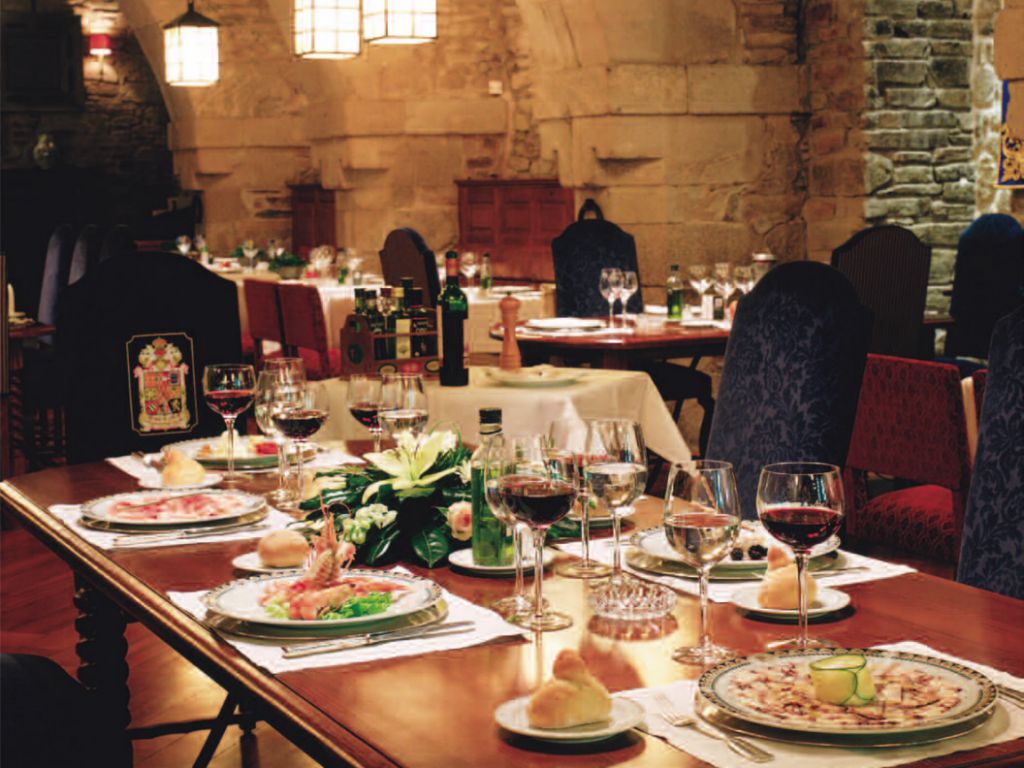 Restaurante del Parador Hostal dos Reis Católicos con un Sol en la Guía Repsol 2020 que ofrece una cocina creativa y puesta al día.