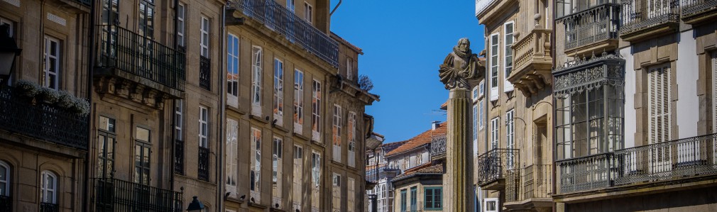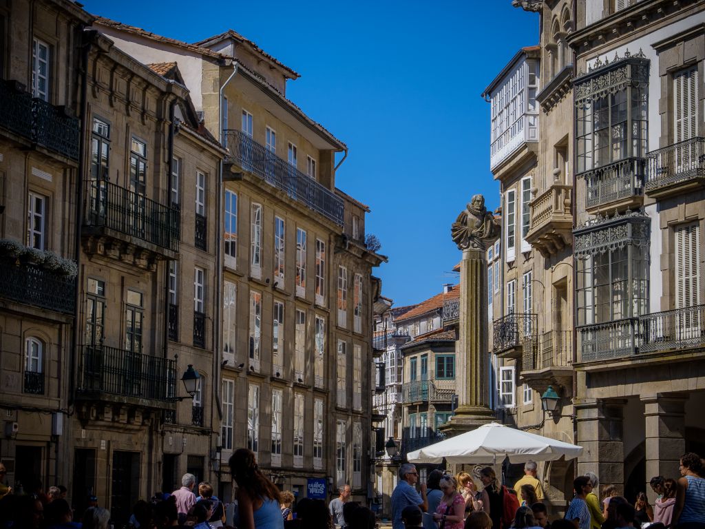 En dirección contraria, la plaza de San Miguel conecta con la de San Martiño Pinario, dominada por la fachada de la iglesia de este imponente monasterio.