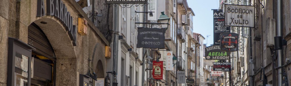 La rúa do Franco concentra buena parte de la oferta gastronómica del casco histórico. Sus restaurantes recogen la herencia de los taberneros medievales que se asentaron allí para atender a los peregrinos (los francos, entendidos bien como cualquier peregrino llegado a través de los Pirineos, como ‘hombres libres' o como ‘Nación Franca') que dieron nombre a esta calle. Muchas de sus casas conservan aún, grabados en piedra, símbolos como la concha, que las identifican como posesiones del Cabildo compostelano, el árbol –símbolo de San Martiño Pinario- o las cinco estrellas del escudo de la Universidad compostelana. Sus estudiantes instituyeron para la vida nocturna el ‘rally París-Dakar', legendario recorrido nocturno que empezaba y terminaba en los bares de dichos nombres. En cada taberna era obligatorio beber una taza de vino y contar un chiste.