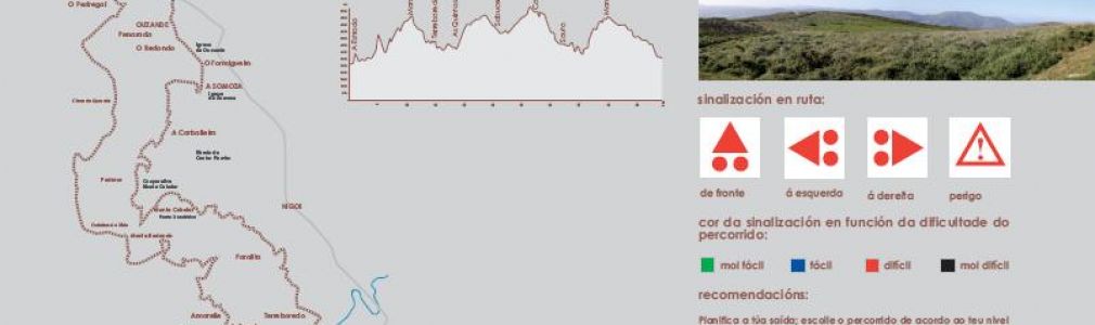La ruta tiene una distancia de 55 kilómetros, su dificultad es media-alta y el tiempo necesario para realizarla es de unas 5-7 horas aproximadamente. Sale desde A Estrada y pasa por las parroquias de Ouzande, Somoza, Nigoi, Codeseda, Soto y Arca para terminar de nuevo en A Estrada.
