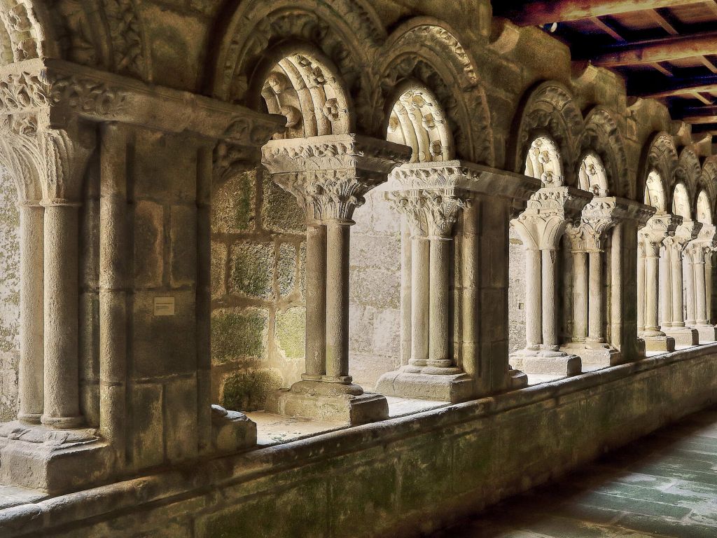 El interior del templo se comunica a través de la sacristía con un magnífico claustro, el único de la ciudad con vestigios del original estilo románico. Tan solo se conserva una de las alas, el resto pertenece a los siglos XVII y XVIII. La fuente que ocupa el espacio central, muy similar a la que podemos observar también en el interior del claustro catedralicio, se remonta al s. XIII y fue construida en granito de una sola pieza.