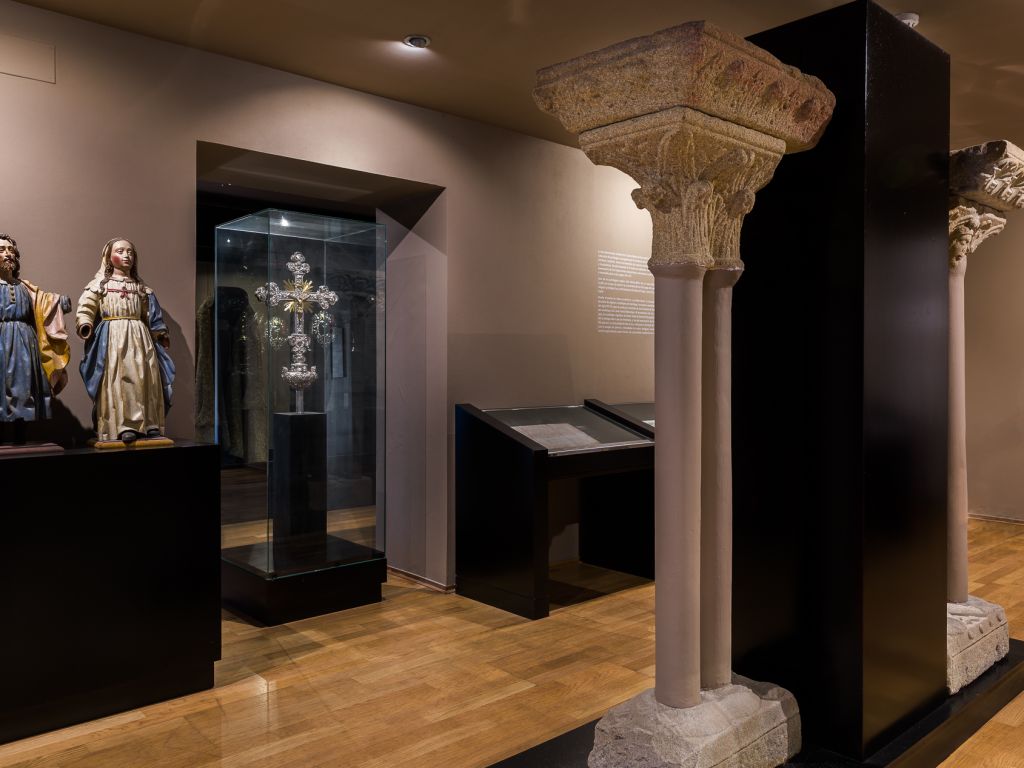 Dentro del pequeño museo fundado en 1975 podremos admirar diversas piezas de importante valor histórico y documental, como el ya citado documento fundacional del templo, fechado en 1136 y sellado por el arzobispo Diego Gelmírez. En la sección dedicada a la orfebrería se pueden ver objetos litúrgicos realizados en talleres compostelanos durante el siglo XVIII. La colección arqueológica está formada por una serie de piezas del antiguo claustro románico, ligados estilísticamente al Maestro Mateo y su escuela. Entre estas piezas también podremos ver restos de los rosetones originales de época románica que presidían la fachada occidental de la iglesia y que fueron retirados en el s. XVIII.