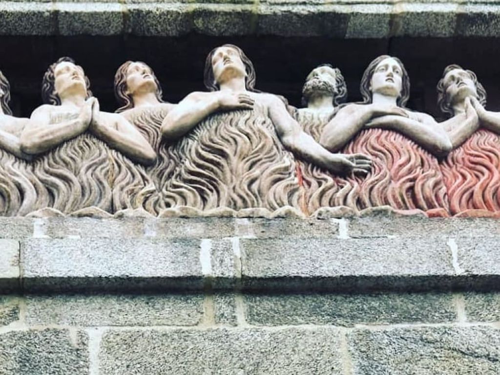 Una vez llegados a la Iglesia de las Ánimas, nos llama la atención el sobrio clasicismo de esta construcción, en una ciudad donde predominan claramente los estilos románico y barroco. La fachada da muestras de la simplicidad constructiva del Neoclásico, sólo alterada por un altorrelieve con la representación del Purgatorio.