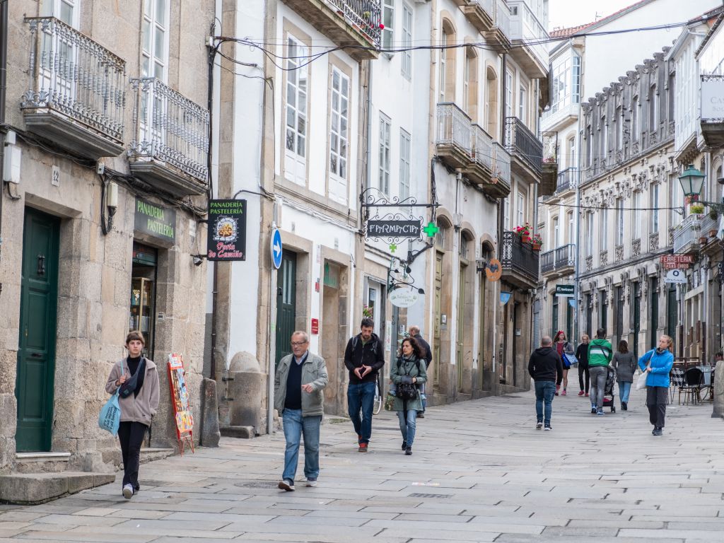 En su recorrido hacia la Catedral, los caminantes pasan por la llamada Rúa de Casas Reais, denominación ésta que nos recuerda que en este lugar se levantó un complejo de edificaciones que pertenecían a la Real Audiencia de Galicia en Santiago, institución bajo el poder y el control de la Corona Real.