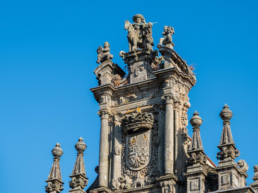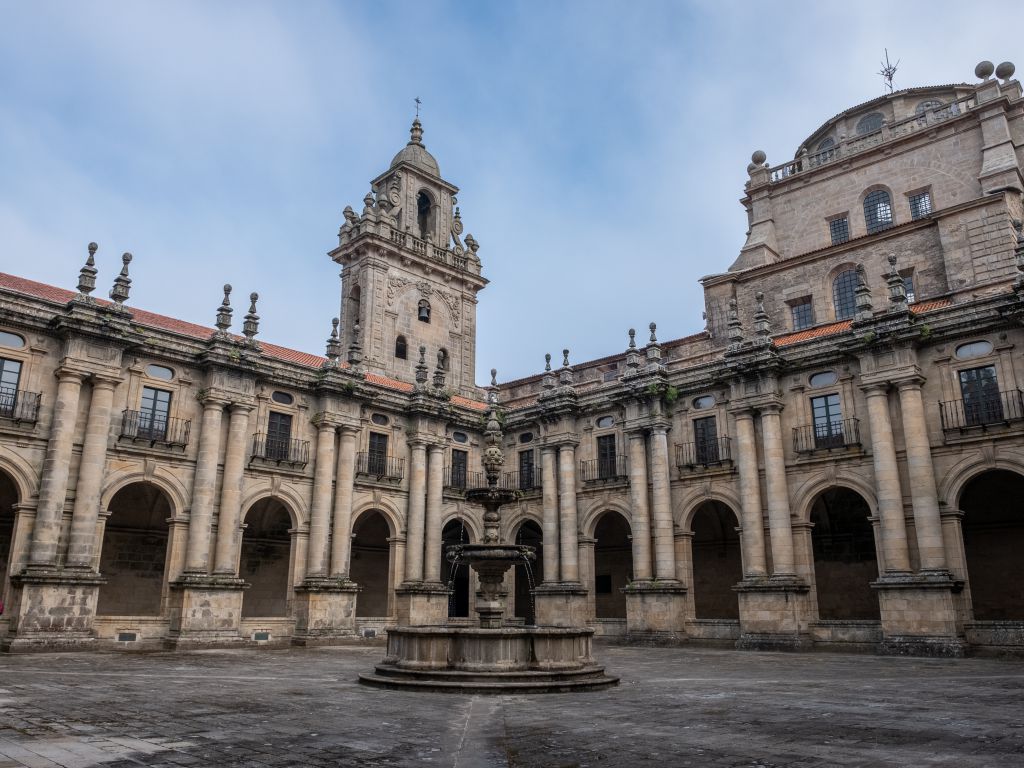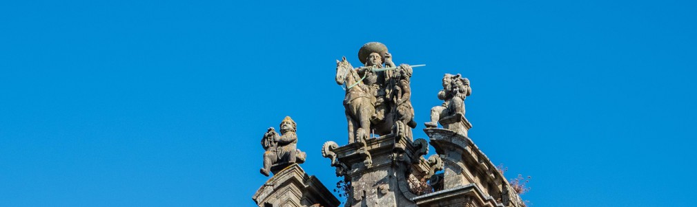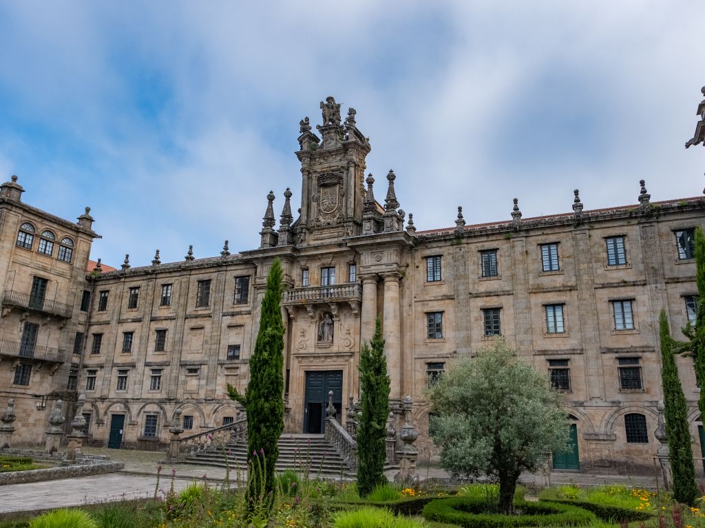 Estamos frente a la fachada del imponente monasterio de San Martín Pinario. Fue fundado en el siglo X para albergar a un grupo de monjes cuya tarea era custodiar las reliquias del Apóstol. Con una extensión de más de veinte mil metros cuadrados, es el segundo mayor de España, sólo superado por El Escorial.
