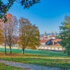 El agua susurra en todo el paseo: bajo fuentes, canales y pequeños aljibes. Las especies vegetales dan sombra o alegran con sus colores el amplísimo tapiz de césped. Frutales -guindos, cerezos, manzanos-, además de castaños, abedules y magnolias son el preámbulo para la zona más frondosa, un robledal refrescado por una vieja mina de agua.