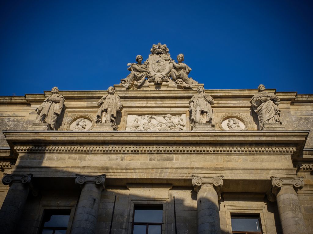 Sin embargo, cuando un compostelano habla de ‘la Universidad’, casi siempre se refiere al edificio que alberga en la actualidad a la Facultad de Geografía e Historia. A esta maciza construcción neoclásica le fue añadido un piso entre los siglos XIX y XX, cuando se decidió sustituir la figura de Minerva, que coronaba el conjunto, por las estatuas de los fundadores de la casa de estudios.