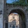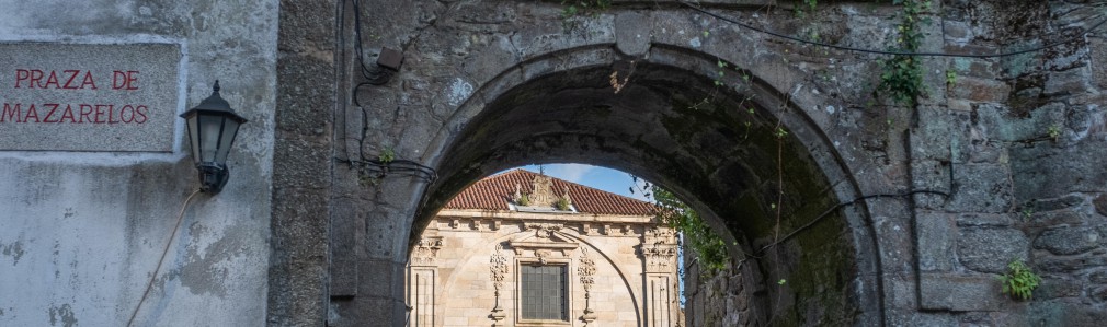 Como curiosidad, apuntaremos que al extremo derecho de esta plaza se abre el Arco de Mazarelos, la única puerta que se ha conservado de la desaparecida muralla medieval. La antigua fortificación del siglo XI, de 2 kilómetros de extensión, fue derribada en el siglo XIX al perder su función defensiva original. Contaba con siete puertas principales que permitían controlar el acceso de personas y mercancías, y que sólo han dejado el recuerdo de sus nombres en la toponimia urbana. La excepción es este arco, que no pudo ser derribado por ser propiedad privada, y que nos permite recordar que por él entraban a la ciudad los cereales y los vinos de O Ribeiro.