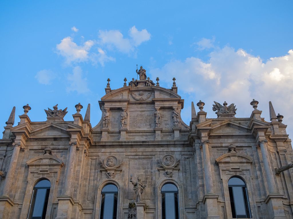 La primitiva fachada norte de la catedral muestra hoy trazas barrocas y neoclásicas, pues fue reformada por entero en el siglo XVIII. Había sido en la Edad Media una de las más hermosas del edificio. El Códice Calixtino, obra recopilada hacia mediados del s. XII, la describe como ‘la Puerta del Paraíso’, no sólo por su belleza, sino porque representaba un programa iconográfico basado en la historia de Adán y Eva, el pecado original y la redención.
