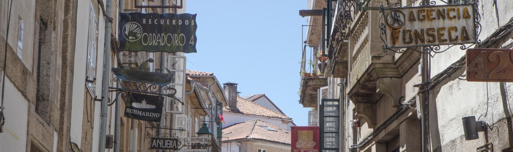 También podemos observar cómo las fachadas de algunas casas aún conservan, grabados en piedra, símbolos como la concha, que las vincula a posesiones del Cabildo compostelano; el árbol –símbolo de San Martín Pinario- o las cinco estrellas del escudo de la Universidad compostelana.
